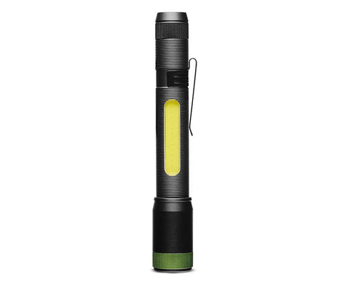 This bright, multipurpose flashlight is designed for a range of tasks and outdoor activities. The flashlight includes a 150-lumen front LED light and 180-lumen side COB LED work light. With a maximum beam distance of 100 metres, the flashlight will keep on running for 20 hours.