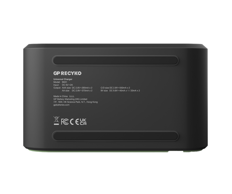 Charge all your batteries fast and worry-free with the Recyko Everyday Universal Charger B631 – a compact universal charger which supports fast charging of up to 6 batteries of different sizes (incl. AA, AAA, C, D & 9V) at the same time for planet-friendly power. It fully charges 4 x AA or 4 x C batteries* in 6 hours, offering tremendous convenience for households with various devices.