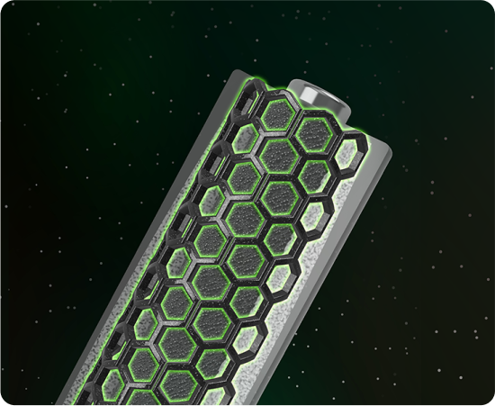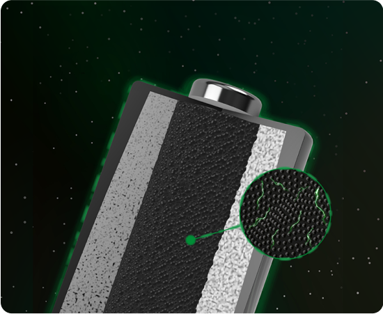 High-density Zinc S powder in the power core provides fast, potent power generation and improved performance.